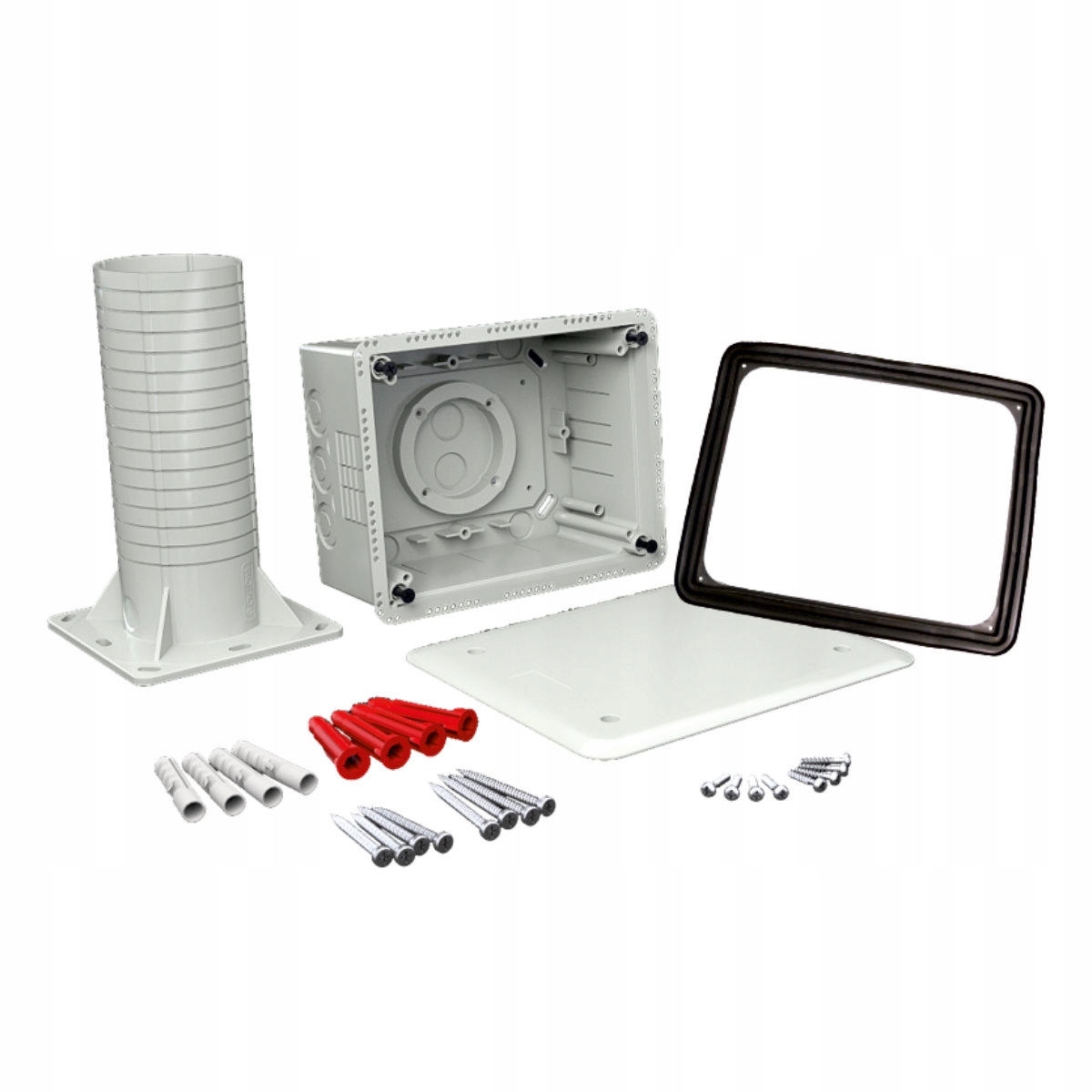Służy do instalowania urządzeń elektrycznych (gniazda, przełączniki, aparatura modułowa, możliwe zamontowanie szyny DIN35 poziomo lub pionowo) na docieplonych elewacjach budynków (ocieplenie o grubości od 120 do 300mm)